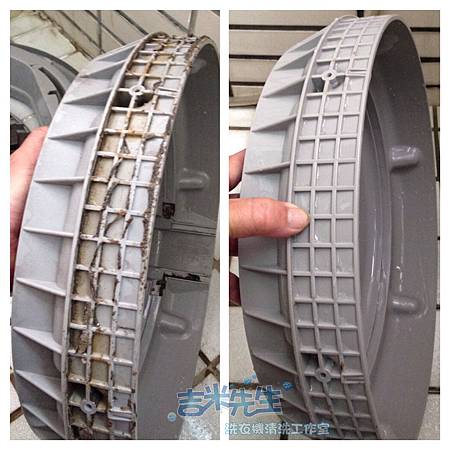 👀這台一拆開後,也是在內外槽及底盤都有不少髒污,嚴重髒污就交給吉米先生,一切搞定!
