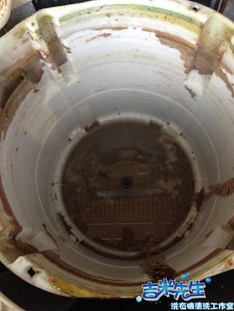 這台洗衣機是很少見的牌子,不過因為已使用10年多, 跟一般常見的十年機子一樣,期間又沒有請專人清洗,拆開後槽內卡了不少明顯的髒垢,小編整理圖時也發現塑膠外筒也累積了不少黑垢,用這樣的洗衣機清洗家中衣物,真的令人不放心!!